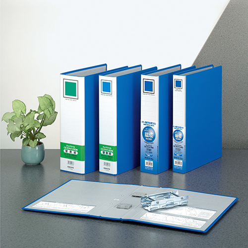 リサイクルを考えた両開きタイプの決定版。簡単にとじ具の分別廃棄や表紙の差し替えが可能。