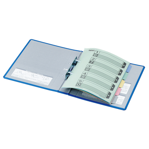 ●両開きパイプ式ファイルのB5タテ、背幅45mmの青です。