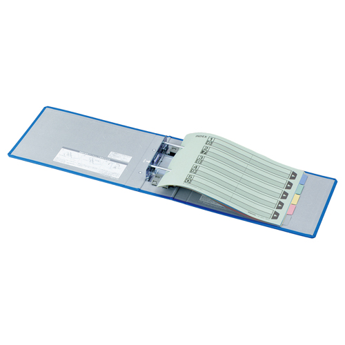 ●両開きパイプ式ファイルのB5ヨコ、背幅75mmの青です。