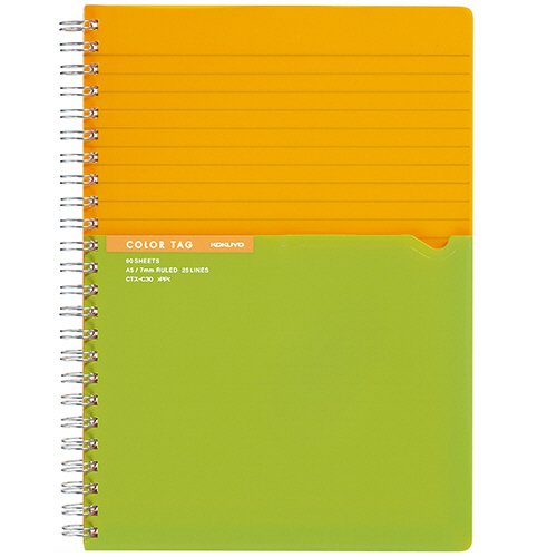 ツインリングノート(カラータグ) Bi-COLOR A5 A罫 90枚 イエロー 1冊
