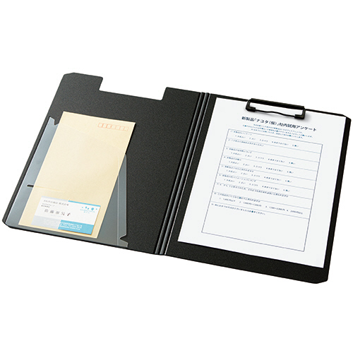 ●薄くて軽い発泡PP製のクリップファイル、表紙色はピンク、内側はブラックです。