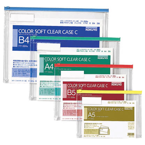 カラーソフトクリヤーケースC(チャック付き) マチ付 A4ヨコ 緑 1枚