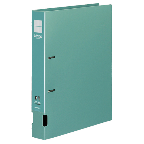 ●書類が水平に開き、閲覧に適したD型リング式とじ具のファイル。A4タテ、背幅45mmの緑です。