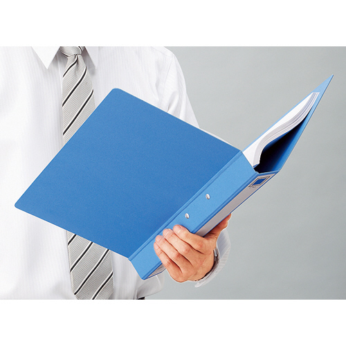 ●閲覧しやすい折り目の加工がされた片開きパイプ式ファイルのA4タテ、背幅33mmの青1冊入です。