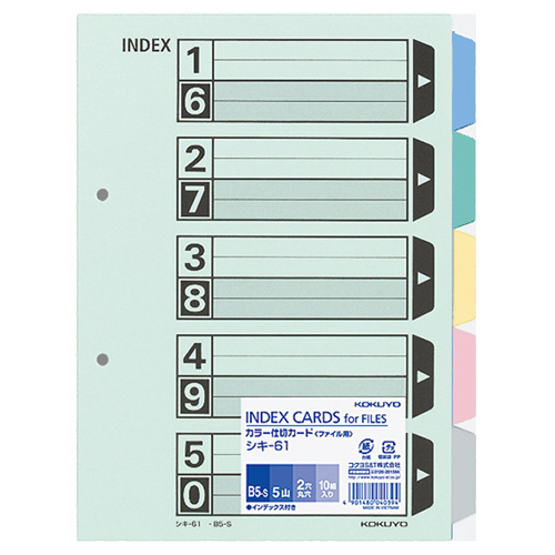 カラー仕切カード(ファイル用・5山見出し) B5タテ 2穴 5色+扉紙 1パック(10組)