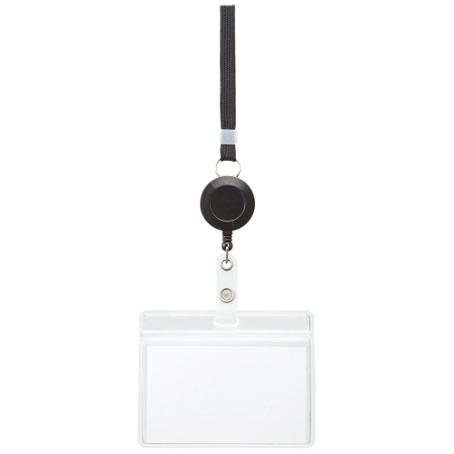 リール式吊下げ名札 チャックなし 黒 1個 【5-8営業日遅延】