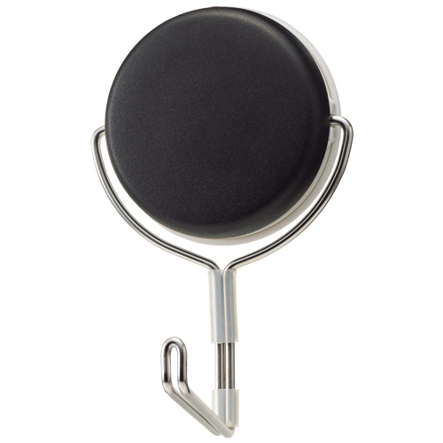 ●荷物がかけやすい、長いフックを採用した耐荷重10kgのマグネットフック、色はブラックです。
