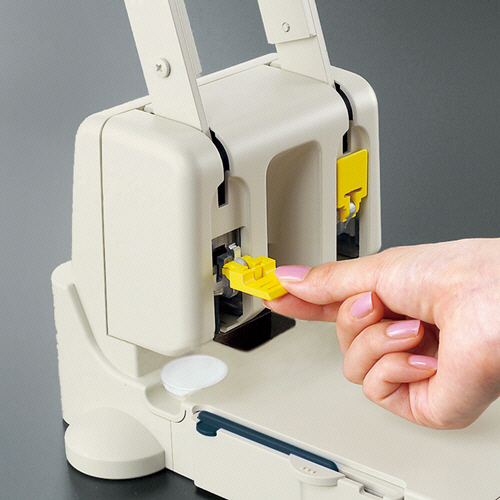 ●A4長辺までのセンター合わせが可能なゲージに、安定して用紙が載せられる幅広ゲージを採用。PPC用紙約180枚まで穴あけ可能です。