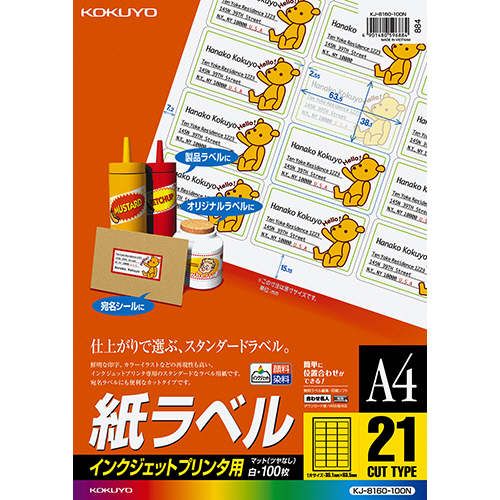 ●A4サイズ、21面付け、100シート入りです。
