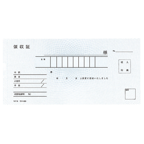 ●仕様/領収証、2枚複写、バックカーボン複写、小切手判、収入印紙欄あり