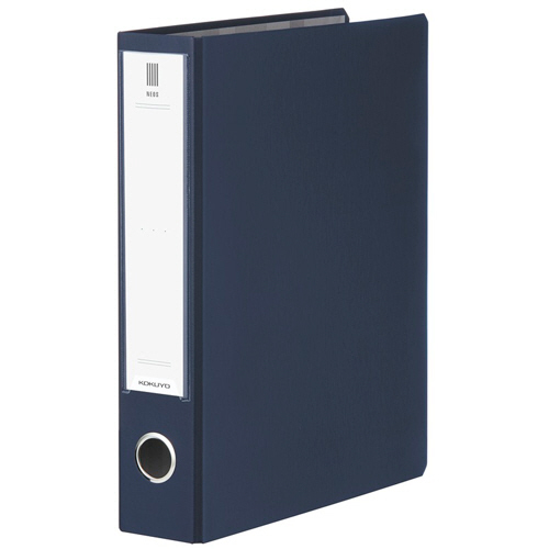 ●オフィスにマッチするスタイリッシュなカラー、ネイビーの両開きパイプ式ファイル。A4タテ・背幅65mmです。