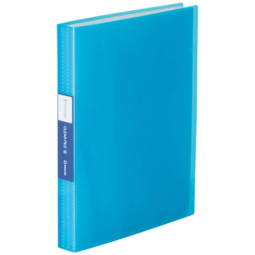 ●ピカピカ鏡面仕上げのクリアーファイル。60ポケットの青。