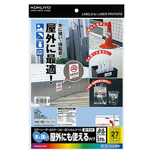 ●A4サイズ、27面付け、白・マットのフィルムラベルです。10シート入り。