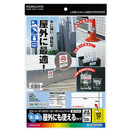●A4サイズ、12面付け、白・マットのフィルムラベルです。10シート入り。