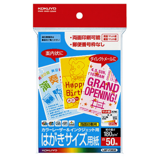 ●両面印刷用・マット紙のはがきサイズ用紙。50枚入り。