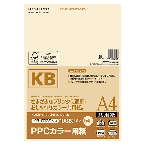 PPCカラー用紙(共用紙) A4 アイボリー 1冊(100枚)