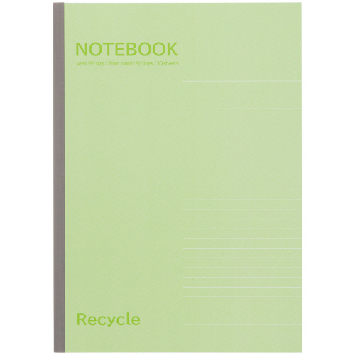 ●環境にやさしい再生紙を使用したセミB5サイズ、A罫、30枚のノートです。