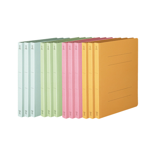 ●背幅28mm、厚とじタイプのフラットファイル。A4タテ、青・緑・ピンク・黄各3冊入です。