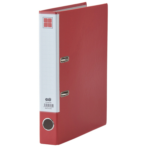 ●丈夫な貼り表紙タイプ。背幅50mmのレバー式アーチファイルの赤です。