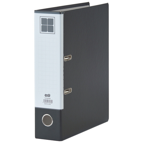 ●丈夫な貼り表紙タイプ。背幅80mmのレバー式アーチファイルの黒です。