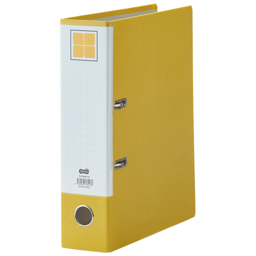 ●丈夫な貼り表紙タイプ。背幅80mmのレバー式アーチファイルの黄10冊です。