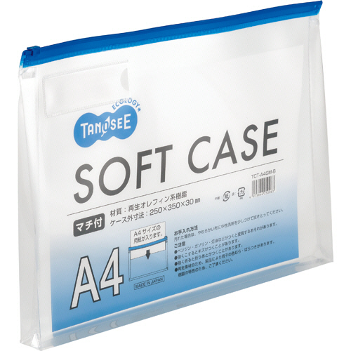 クリヤーケース マチ付 A4ヨコ 青 1枚