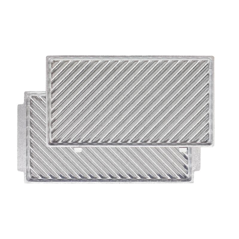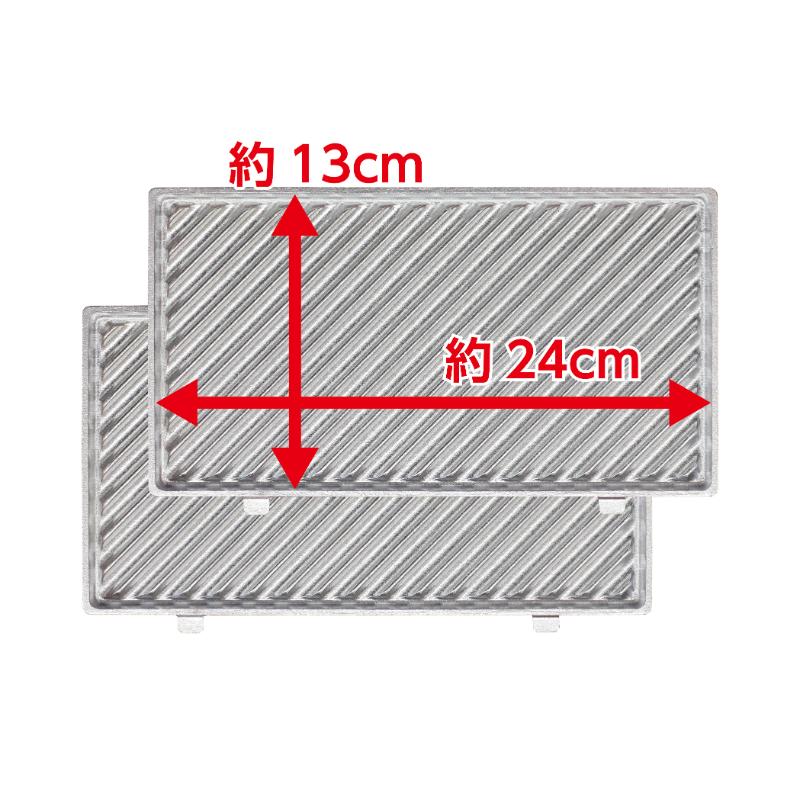 MCBK-10SSに使用できるホットサンド上下プレートセット。食パンは横並びで2枚並べられます。4cm程度の厚みのある食材は焼成可能です。サイズ:272×245×23mm材質:アルミ重量:832g原産国/製造国:中国272×245×23mm