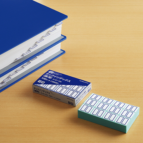 ●23×29mm青枠のタックインデックス、12片100シート入です。