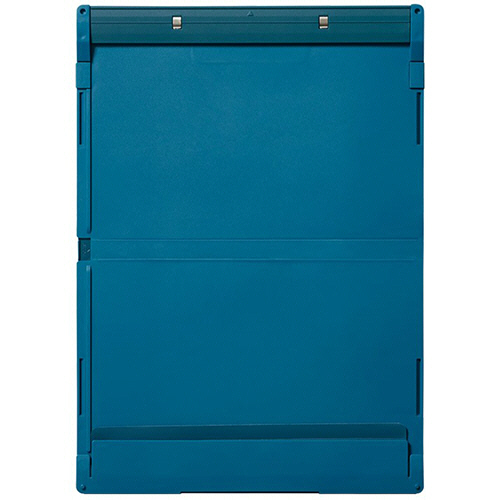 ●半分に折りたたんで、コンパクトに持ち運べるクリップボード。A4サイズ、色は青です。
