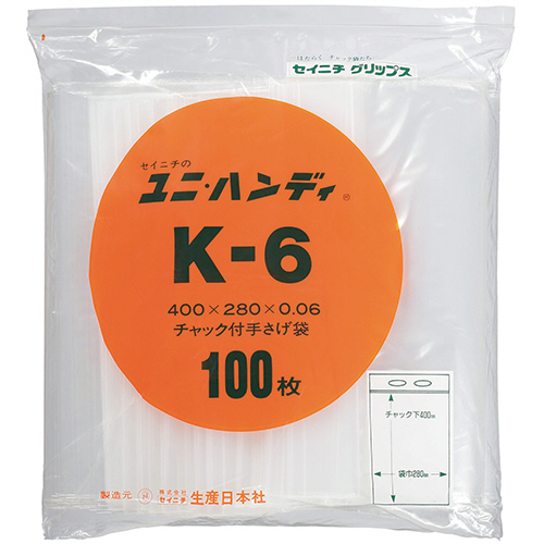 ユニハンディ チャック下400×幅280mm 1パック(100枚) 【5-8営業日遅延】