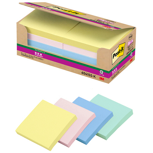 パソコンや電話、キャビネットなどの樹脂面や垂直面にもしっかり貼れて、はがれにくい強粘着タイプ。パステルカラーのノートサイズ。