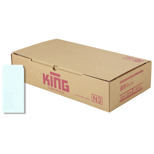 ●糊の劣化が遅く長期保存に適したシリコンテープ付の窓明封筒。長3のブルー、1000枚入です。