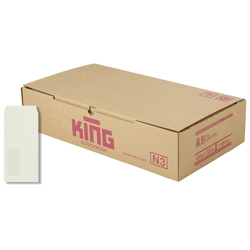 ●糊の劣化が遅く長期保存に適したシリコンテープ付の窓明封筒。長3のグレー、1000枚入です。