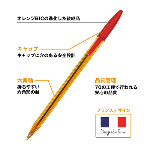 ●オレンジBICより約1.75倍長持ちで、独自の高精度な製造プロセスにより規則的なインクの流れを実現。