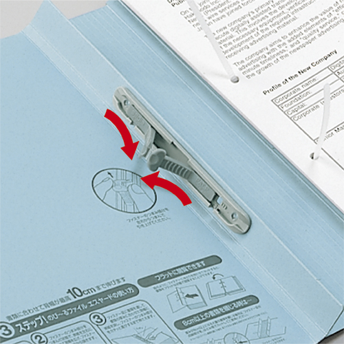ワンタッチ操作のファスナー式とじ具を採用。書類の量に合わせて背幅が伸びる便利なファイル。