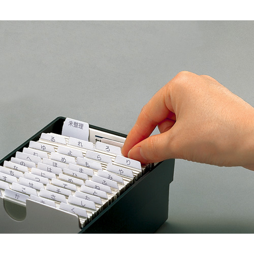 ●付属品/見出しカード48枚(「あいうえお」別の個別見出しカード×44枚、「未整理」の見出しカード×1枚、無地の見出しカード×3枚)、仕切り板×2枚