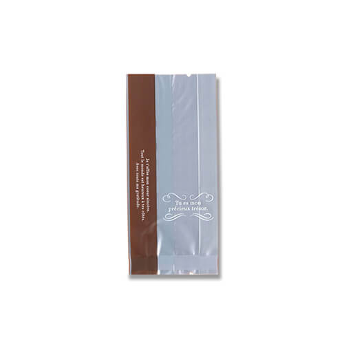 茶色のワンポイントがおしゃれなサイドガゼットタイプのポリ袋。
