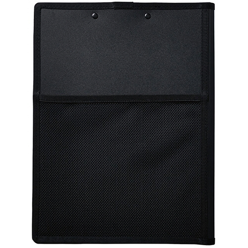 多機能ポケットが小物と書類の持ち運びに便利。カバー付きクリップボード。