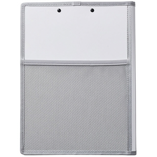 多機能ポケットが小物と書類の持ち運びに便利。カバー付きクリップボード。