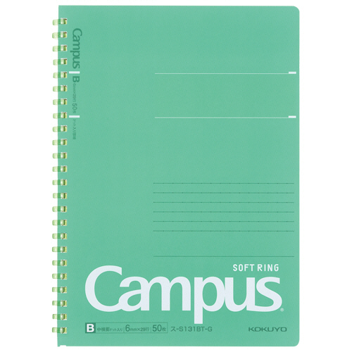 キャンパス ソフトリングノート(ドット入り罫線 カットオフ) A5 B罫 50枚 グリーン 1冊