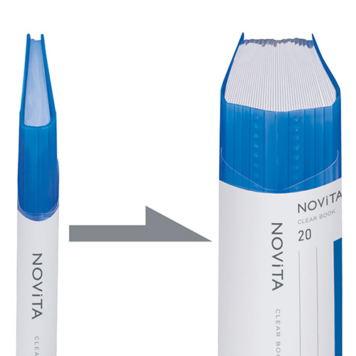 ●背幅が約8倍広がる「ノビータ」。A4タテ・20ポケット、背幅5~40mm、透明のクリヤーブック。