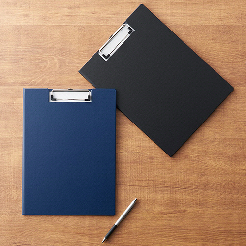 ●大切な書類を守る、カバー付きタイプの用箋挟み。色は青です。