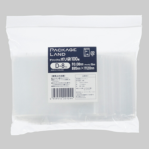 ●サイズ85×120mm、厚さ0.08mmのチャック付ポリ袋です。