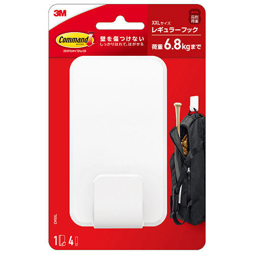 ●強く接着できるのに、粘着テープを引き伸ばすことでキレイにはがせるレギュラーフック。XXLサイズです。