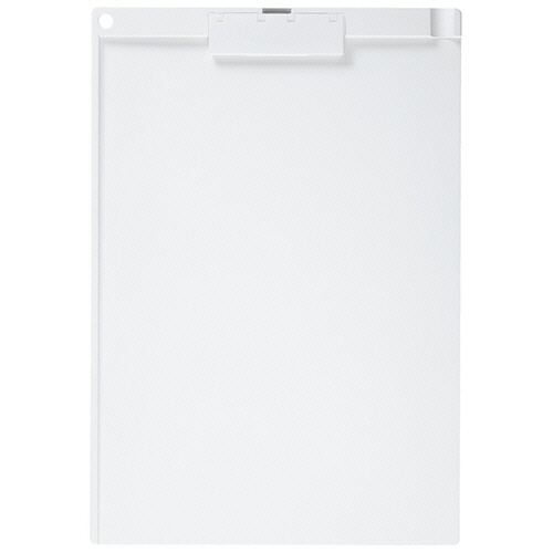 ●かさばりにくい薄型クリップ。ホワイトのA4タテ型・短辺とじです。