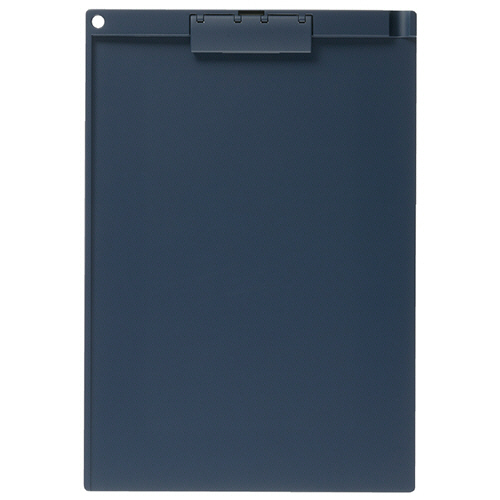 ●かさばりにくい薄型クリップ。ネイビーのA4タテ型・短辺とじ、10枚のセットです。