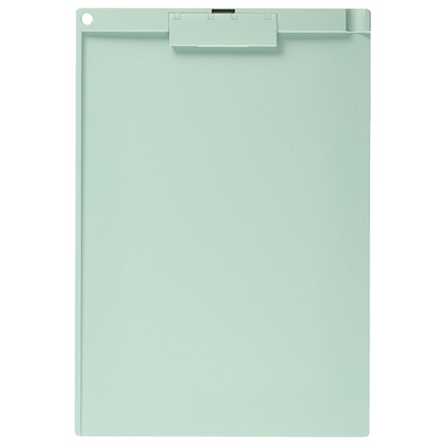 ●かさばりにくい薄型クリップ。グリーンのA4タテ型・短辺とじ、10枚のセットです。