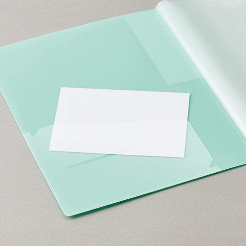 ●書類や名刺の一時保管に便利な透明ポケット付。