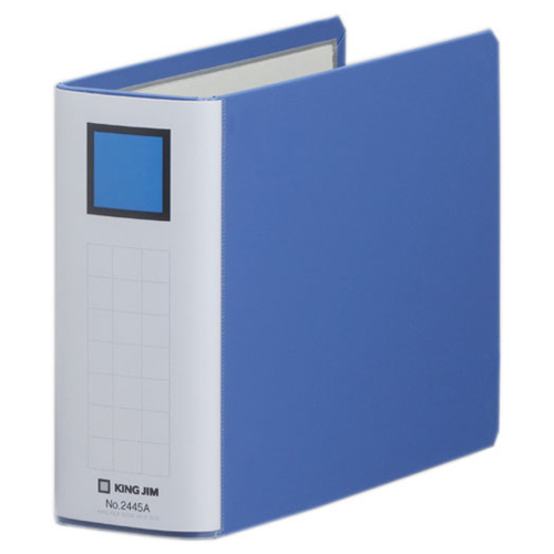 ●書類の抜き差しに便利な両開きパイプ式ファイルのA5ヨコ、背幅66mmの青です。