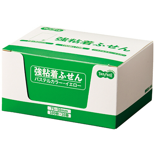 強粘着ふせん 75×50mm パステルカラー・イエロー 1セット(30冊:10冊×3パック) 【5-8営業日遅延】